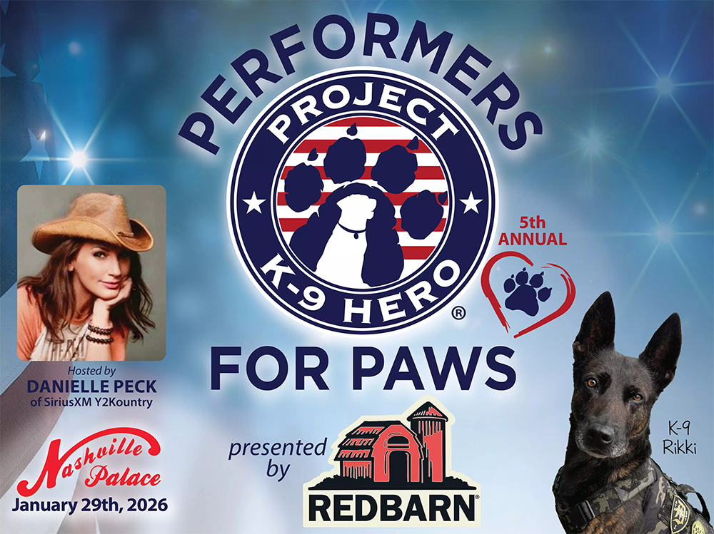 The 5th Annual PERFORMERS FOR PAWS is presented by Redbarn Pet Products, co-hosted by Danielle Peck from SiriusXM Y2Kountry and Jeff Womack of RFD TV. Enjoy acoustic performances from country music artists, a silent and live auction, and the opportunity to meet several of our organization’s K-9 ambassadors.