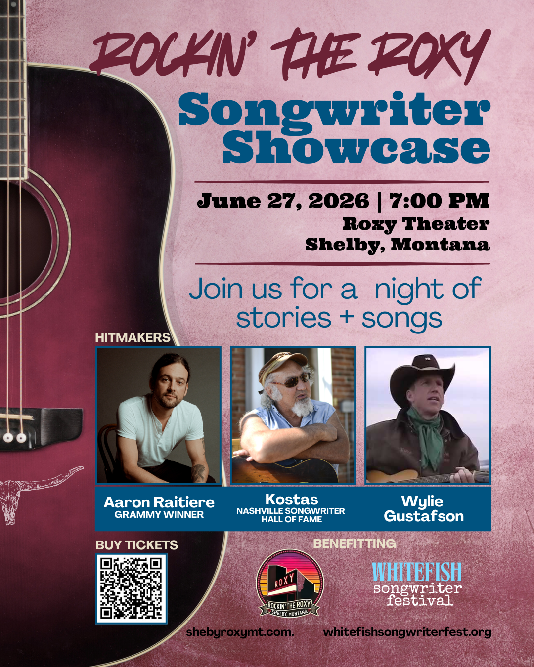 Join us on the Hi-Line of Montana for an unforgettable celebration of music, storytelling, and community at the historic Roxy Theater in Shelby. Rockin’ the Roxy: Hitmaker Weekend Songwriter Showcase brings together acclaimed hit songwriters for an intimate, behind-the-music experience where the songs you love come to life through the stories that inspired them.